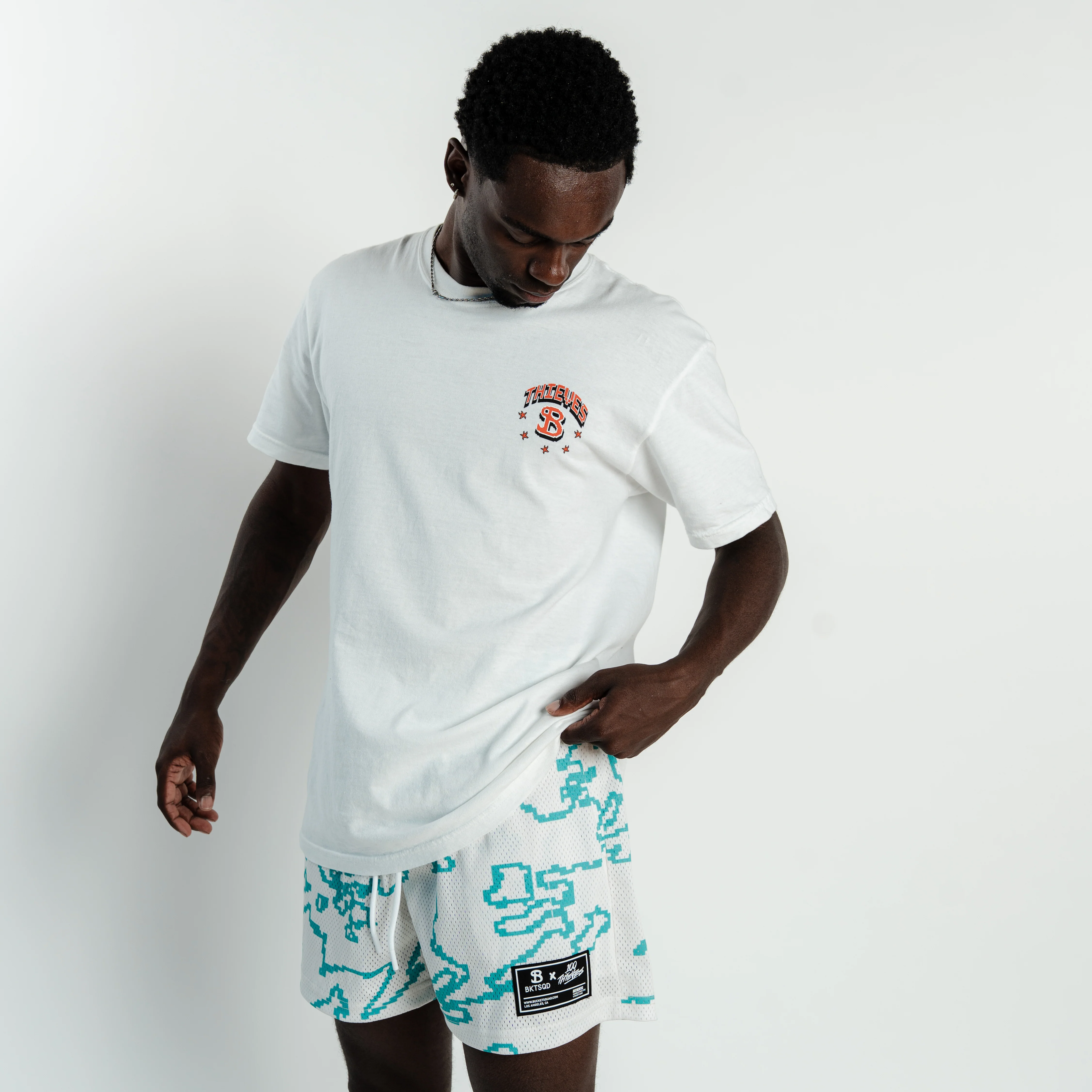 100 THIEVES TEAL GEO YOUTH SHORTS